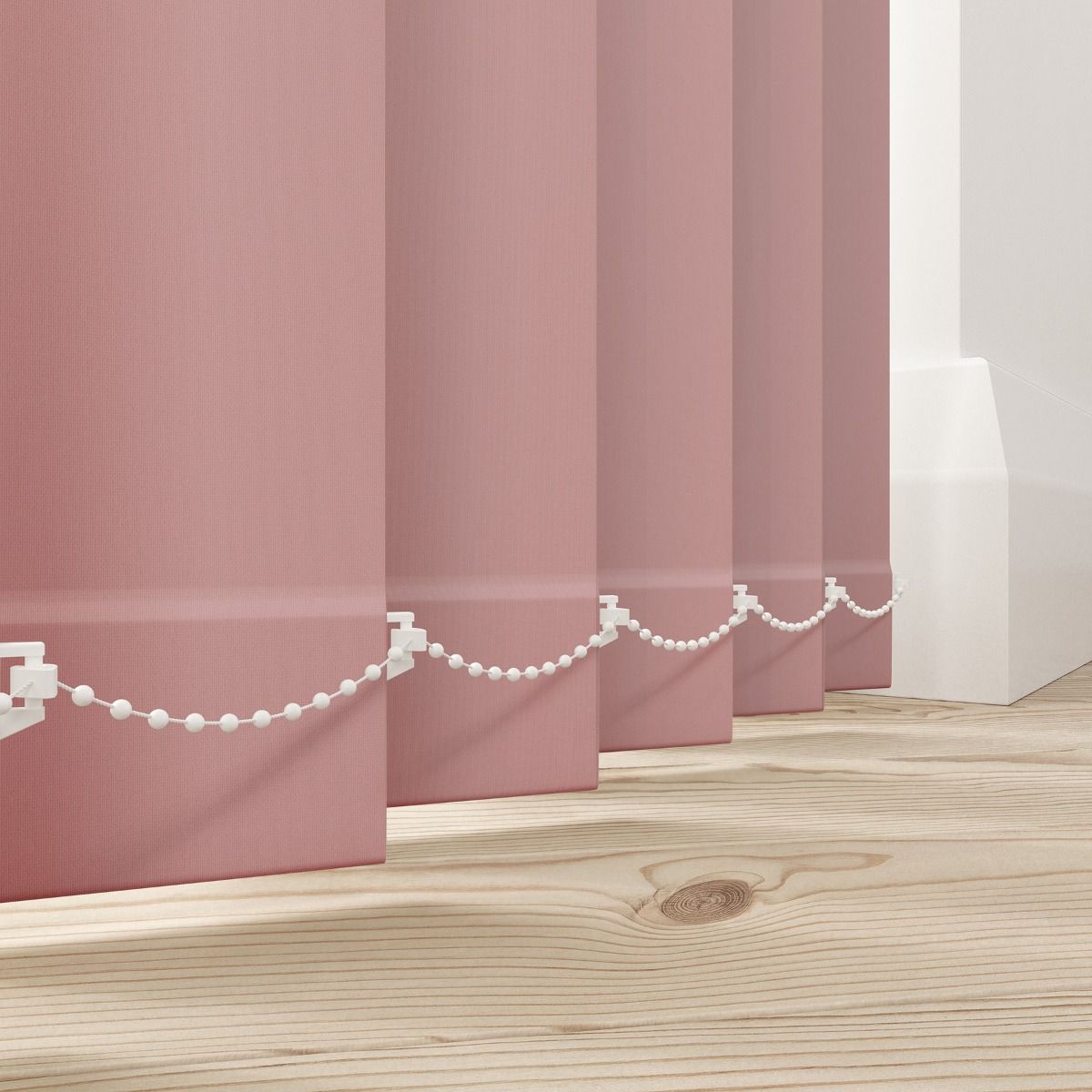Our Bella Blackout Vertical Blinds in Blush Pink are the perfect addition to your interiors. These lightly textured blinds give you complete control over the natural light, creating a relaxing atmosphere throughout the day. Our Bella range is crafted to the highest quality, presenting a matte finish that offers the ultimate privacy and light protection for your home. These blackout blinds are perfect for creating the ideal ambience for a good night's sleep. Suitable for use with larger windows, bi-folding windows, and patio doors, these blinds are available in 60 captivating colorways, from whites and greys to bold brights like pinks, reds, blues, and greens, so you can find the perfect shade to complement your décor. With a slat width of 89mm, all of our vertical blind fabrics come with vertical head rail options that include a stylish gloss white, chic textured white, and classic textured anthracite. To top it off, all of our blinds come with a standard 5-year guarantee against function, parts, and color fading. Full details can be found on our website.