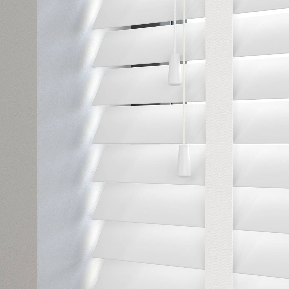 Far and away, one of the most popular blind styles on the market. Timeless wooden blinds will make a stylish & practical addition to your home. Choose between real wood and faux styles, ensuring a perfect finish for your window dressing.Easy to tilt or open with a cord controlOption to upgrade to a state of the art, electric controlled blind!Excellent light & privacy controlCompliments different interior stylesComes with a free 5 Year Warranty.Give your interior a simple update that will make a big impact with the smart Deco Taped Smooth Faux Wood Blind. The ice white colourway teamed with a smooth and refined finish will look easily elegant at any window. The resilient uPVC design provides long-lasting luxury for modern lifestyles.