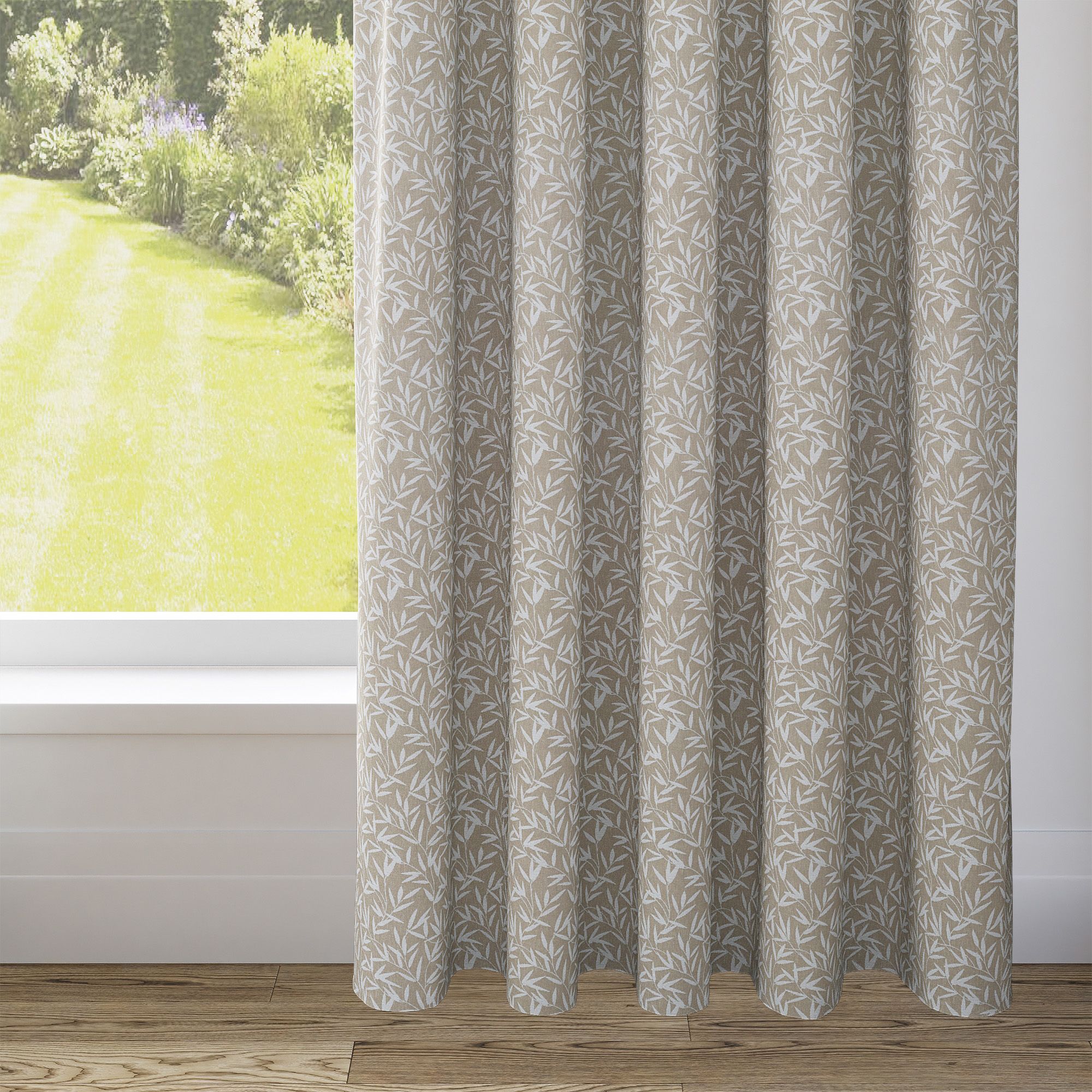 Laura Ashley Willow Leaf Chenille Natural Pencil Pleat Curtain