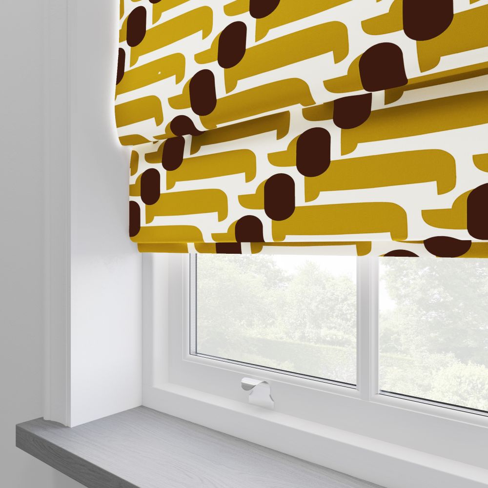 Brighten up your space with the playful charm of our Orla Kiely Dog Show Yellow Roman Blinds. Vibrant and whimsical, these blinds are sure to bring a smile to your face. Featuring a delightful dog show pattern in cheerful yellow, crafted from premium 100% polyester. With their dimout properties, they don't just enhance your decor – they create a cheerful atmosphere, offering privacy and comfort.