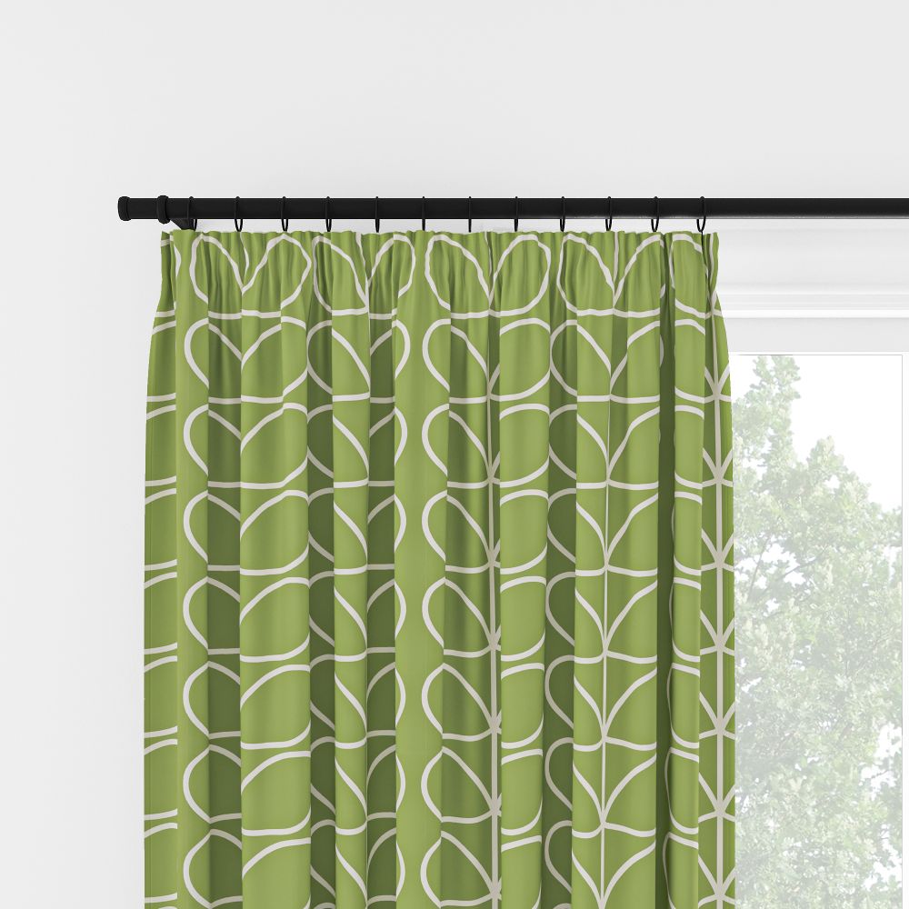 Bring the tranquility of a sun-dappled forest into your home with our Orla Kiely Jumbo Linear Stem Chalky Green Pencil Pleat Curtain. Refreshing and serene, these blinds evoke the calm of nature. Our jumbo linear stem design floats amidst shades of soft green, crafted from premium 100% polyester. And with their dimout properties, they don't just adorn your windows – they create a peaceful retreat, offering privacy and relaxation.