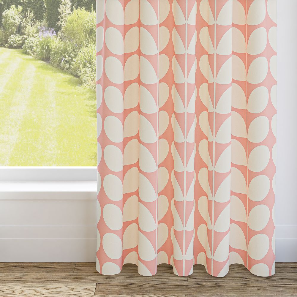 Infuse your space with playful elegance with our Orla Kiely Jumbo Solid Stem Pink Pencil Pleat Curtain. Vibrant, charming, and utterly enchanting, these blinds are a testament to the brand's unique style. Our iconic solid stem design blooms across a canvas of delicate pink, crafted from luxurious 100% polyester. And with their dimout properties, they don't just adorn your windows – they create a sanctuary of privacy and comfort in your home.