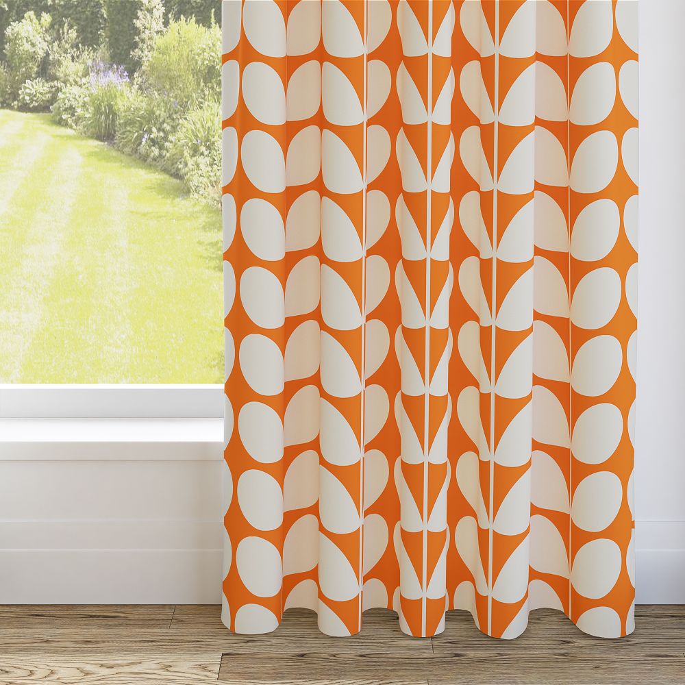 Set your room ablaze with passion with our Orla Kiely Jumbo Solid Stem Tomato Eyelet Curtain. Vibrant, dynamic, and utterly captivating, these blinds are a celebration of colour and style. Our iconic solid stem design takes center stage, splashed across a canvas of fiery orange. Crafted from the finest 100% polyester, they not only dazzle the eye – they envelop your room in a cosy dimout embrace, ensuring privacy and comfort.