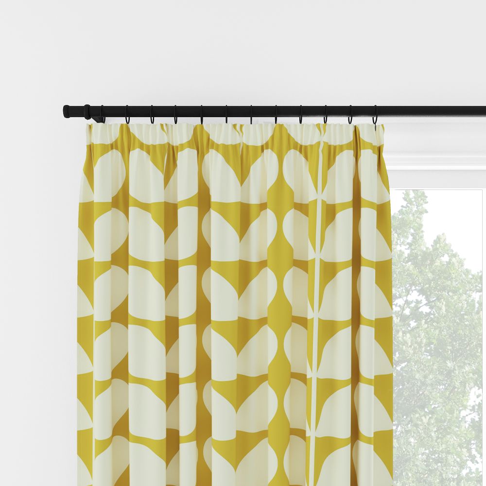 Embrace the warmth of sunshine with our Orla Kiely Jumbo Solid Stem Yellow Pencil Pleat Curtain. Radiant, cheerful, and bursting with personality, these blinds are a beacon of joy for any room. Our iconic solid stem motif dances across a backdrop of sunny yellow, crafted from the finest 100% polyester. And with their dimout properties, they not only brighten your space – they provide a cocoon of privacy and warmth.