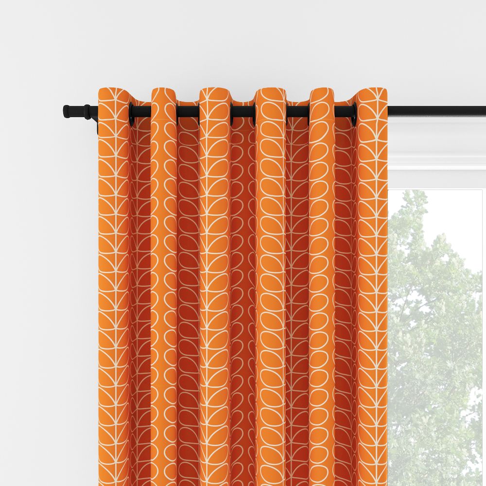Ignite your passion for style with our Orla Kiely Linear Stem Persimmon Eyelet Curtain. Bold and vibrant, these blinds are a statement piece for any room. Our linear stem motif takes center stage, splashed across a backdrop of fiery orange, crafted from premium 100% polyester. And with their dimout features, they don't just dazzle the eye – they create a cosy retreat, shielding you from the outside world.