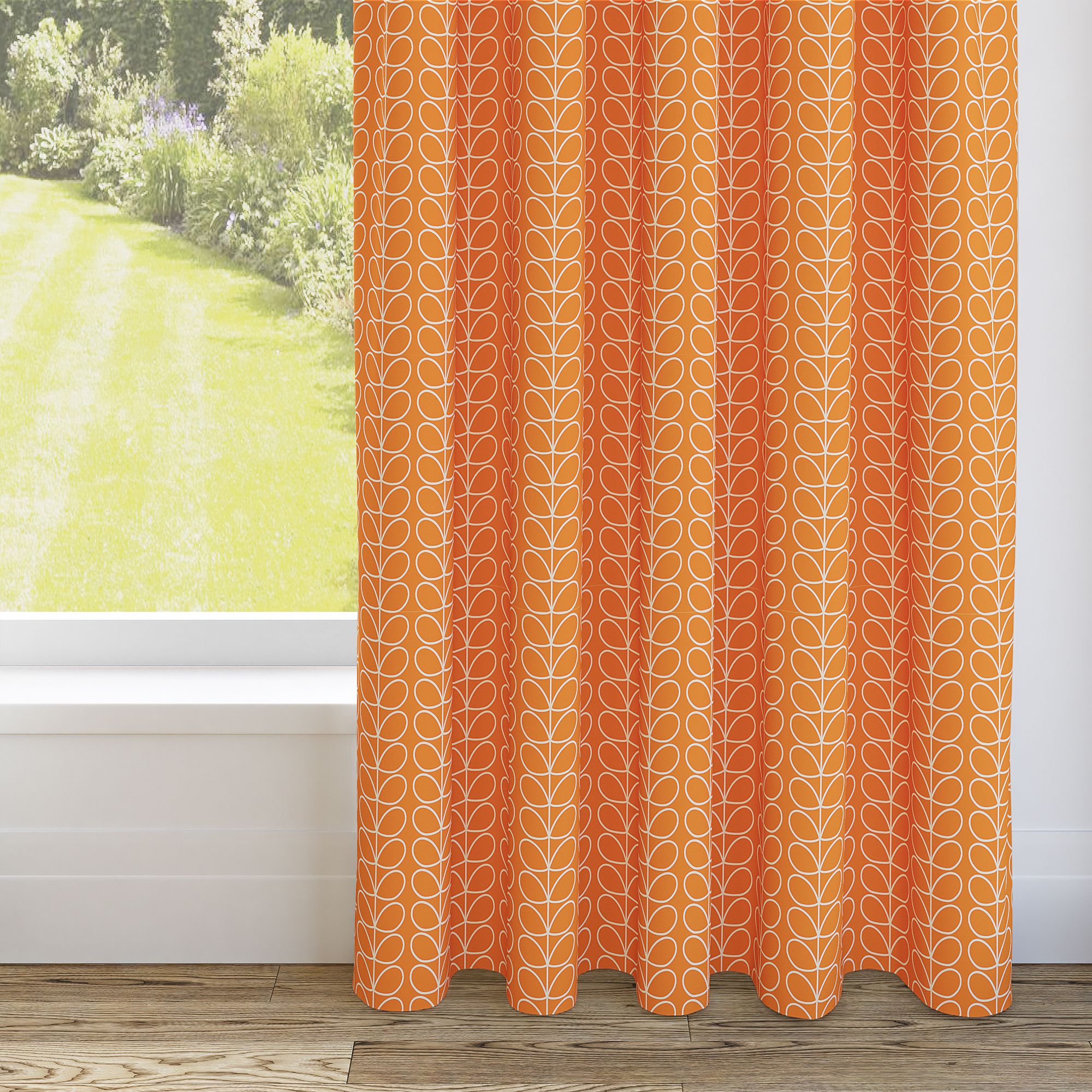 Ignite your passion for style with our Orla Kiely Linear Stem Persimmon Pencil Pleat Curtain. Bold and vibrant, these blinds are a statement piece for any room. Our linear stem motif takes center stage, splashed across a backdrop of fiery orange, crafted from premium 100% polyester. And with their dimout features, they don't just dazzle the eye – they create a cosy retreat, shielding you from the outside world.