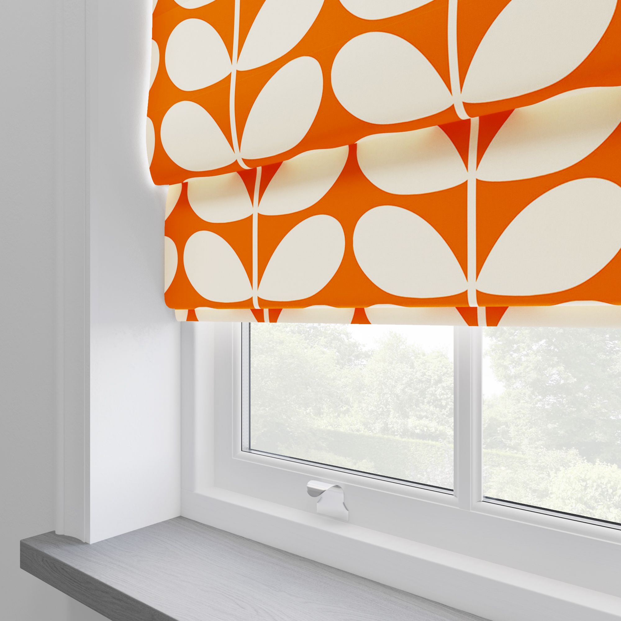 Ignite your passion for style with our Orla Kiely Solid Stem Tomato Roman Blinds. Bold and vibrant, these blinds are a statement piece for any room. Our iconic solid stem design takes center stage, splashed across a backdrop of fiery orange. Crafted from high-quality 100% polyester, they not only dazzle the eye – they envelop your space in a warm, inviting glow, offering both privacy and comfort.