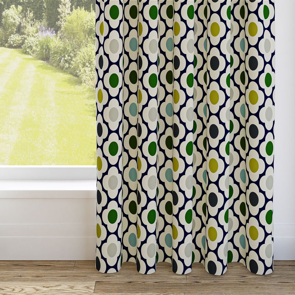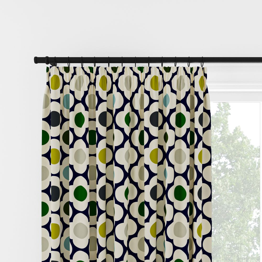 Orla Kiely Spot Flower Blue Multi Pencil Pleat Curtain