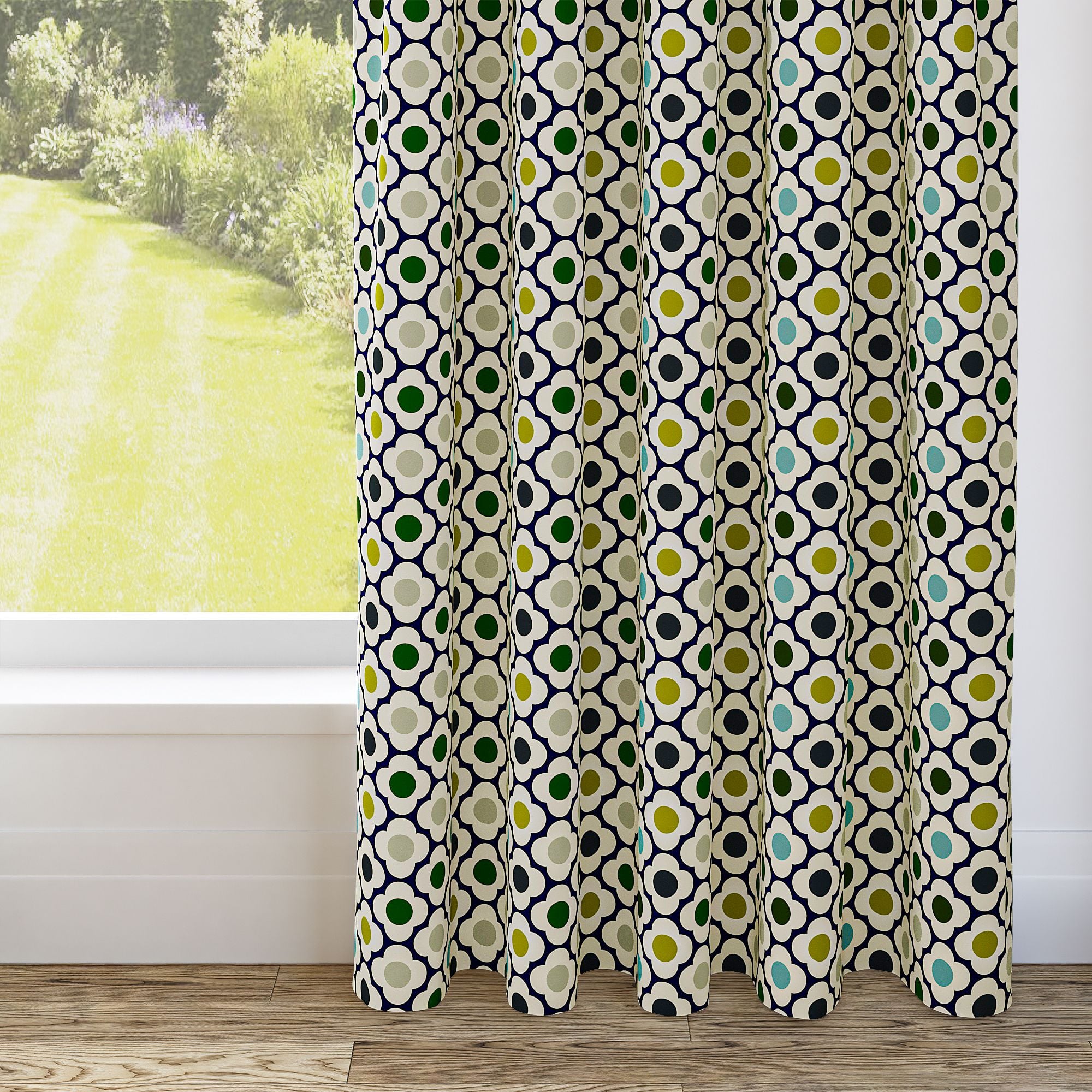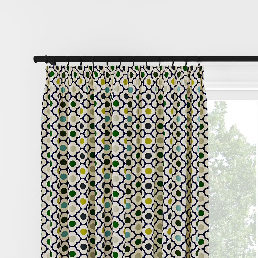 Orla Kiely Spot Flower Ditsy Blue Multi Pencil Pleat Curtain