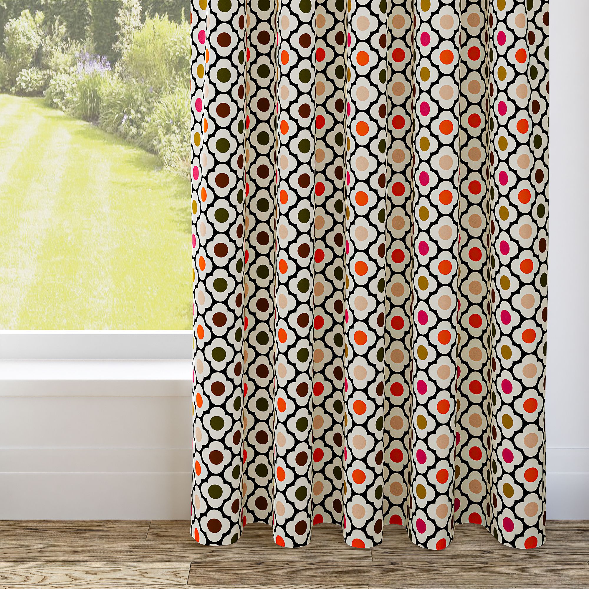 Orla Kiely Spot Flower Ditsy Red Multi Pencil Pleat Curtain