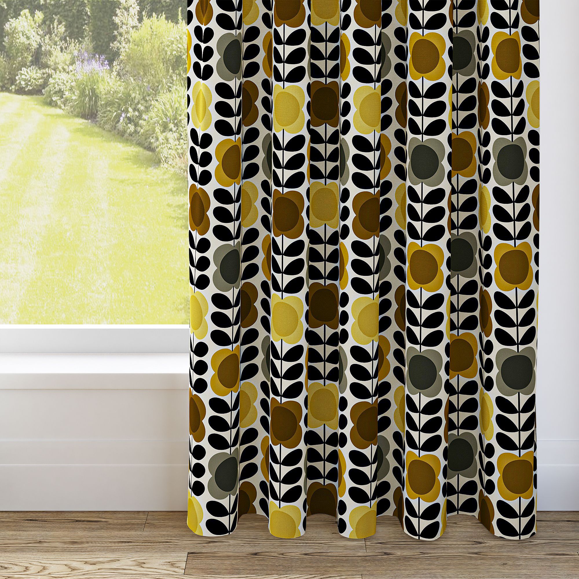 Orla Kiely Spot Flower Stem Yellow & Grey Pencil Pleat Curtain