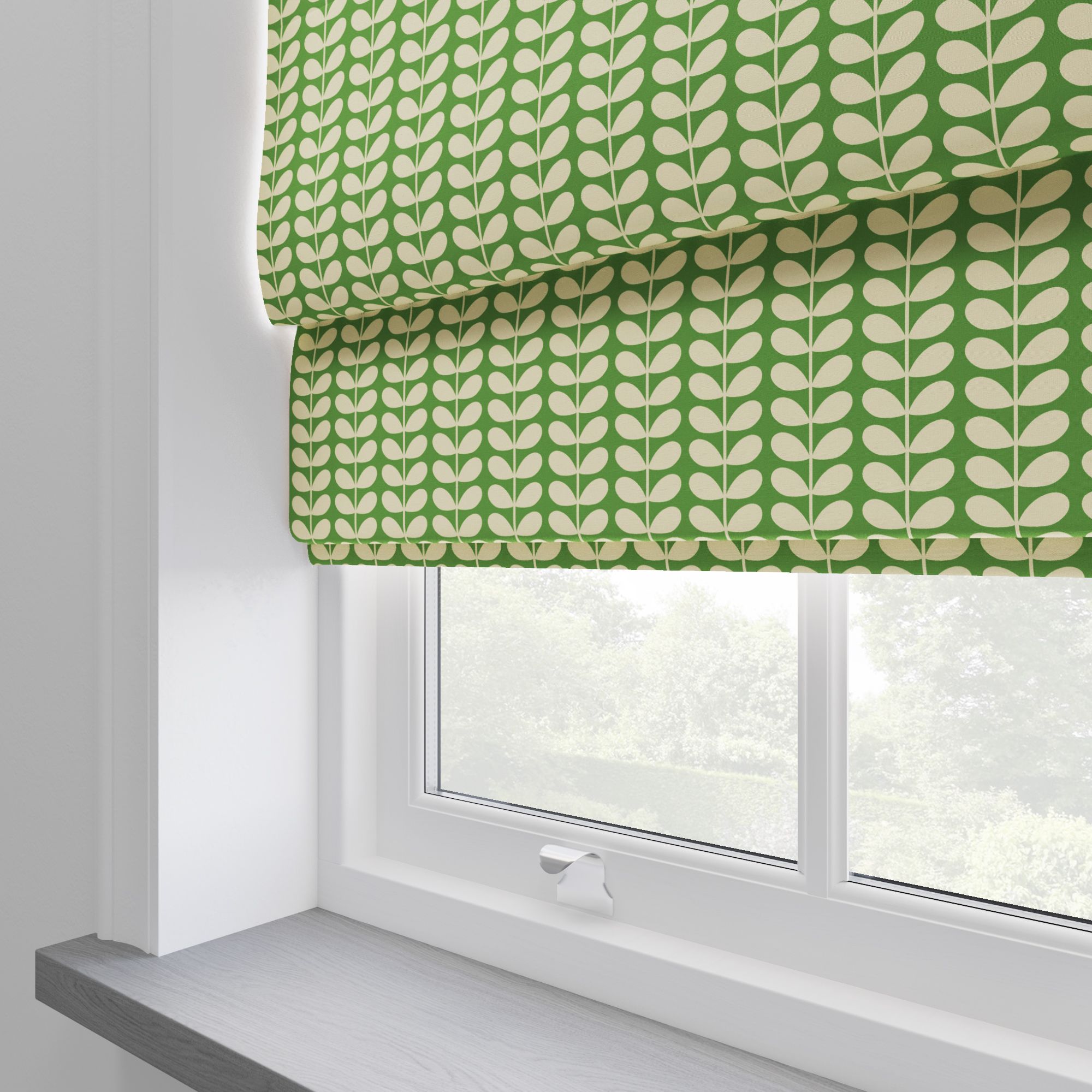 Bring the beauty of nature into your home with our Orla Kiely Tiny Stem Green Roman Blinds. Refreshing and invigorating, these blinds evoke the tranquility of a lush garden. Our delicate tiny stem motif dances amidst shades of vibrant green, crafted from premium 100% polyester. And with their dimout capabilities, they don't just enhance your decor – they create a serene oasis, offering privacy and comfort.