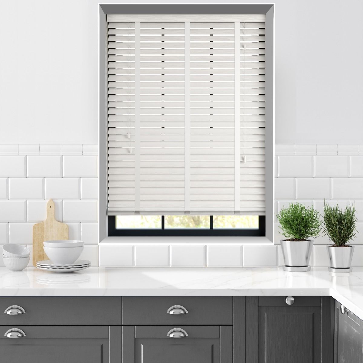 Far and away, one of the most popular blind styles on the market. Timeless wooden blinds will make a stylish & practical addition to your home. Choose between real wood and faux styles, ensuring a perfect finish for your window dressing.Easy to tilt or open with a cord controlGreat range of colour options availableExcellent light & privacy controlCompliments different interior stylesComes with a free 5 Year Warranty.Our best-selling Premier Faux Wood range are made from high-quality flame-retardant PVC slats, and this bright, embossed white faux wood easily brightens the room.With tapes providing a polished and sleek finish, this blind is a perfect addition to rooms that need optimum light and privacy control. As our faux wooden blinds are great for kitchens and bathrooms, with easy-care wipe-clean slats and a clean tailored finish, these blinds are a firm favourite with our customers.